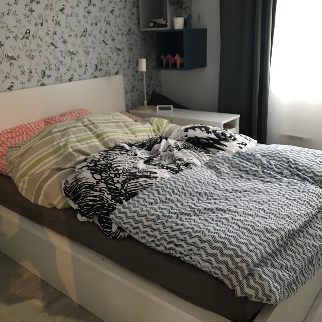 Ikää hurjapäillä on melkein 7 (kaksi lasta), 5,5 ja aivan kohta 4. Aikamoinen kööri siis! Perjantaina aikaa ei siirtymien vuoksi ollut kuin leikkihetkeen, iltapalaan ja sitten siskonpetiin vierashuoneeseen nukkumaan. Kaikki neljä rinnakkain. Oli kuulemma kivaa!