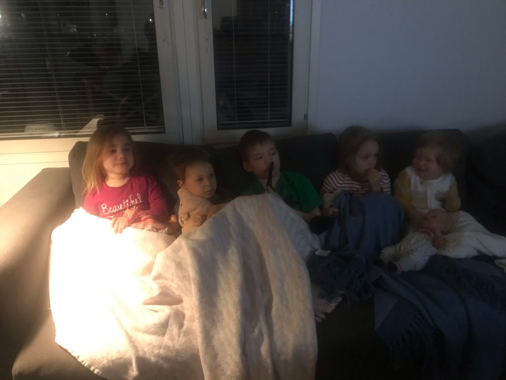 Mukana menossa oman 1-vuotiaamme lisäksi oli kaksi 8-vuotiasta poikaa, ja 4- ja 6-vuotiaat tytöt. Ja hauskaa oli. Kaikilla.