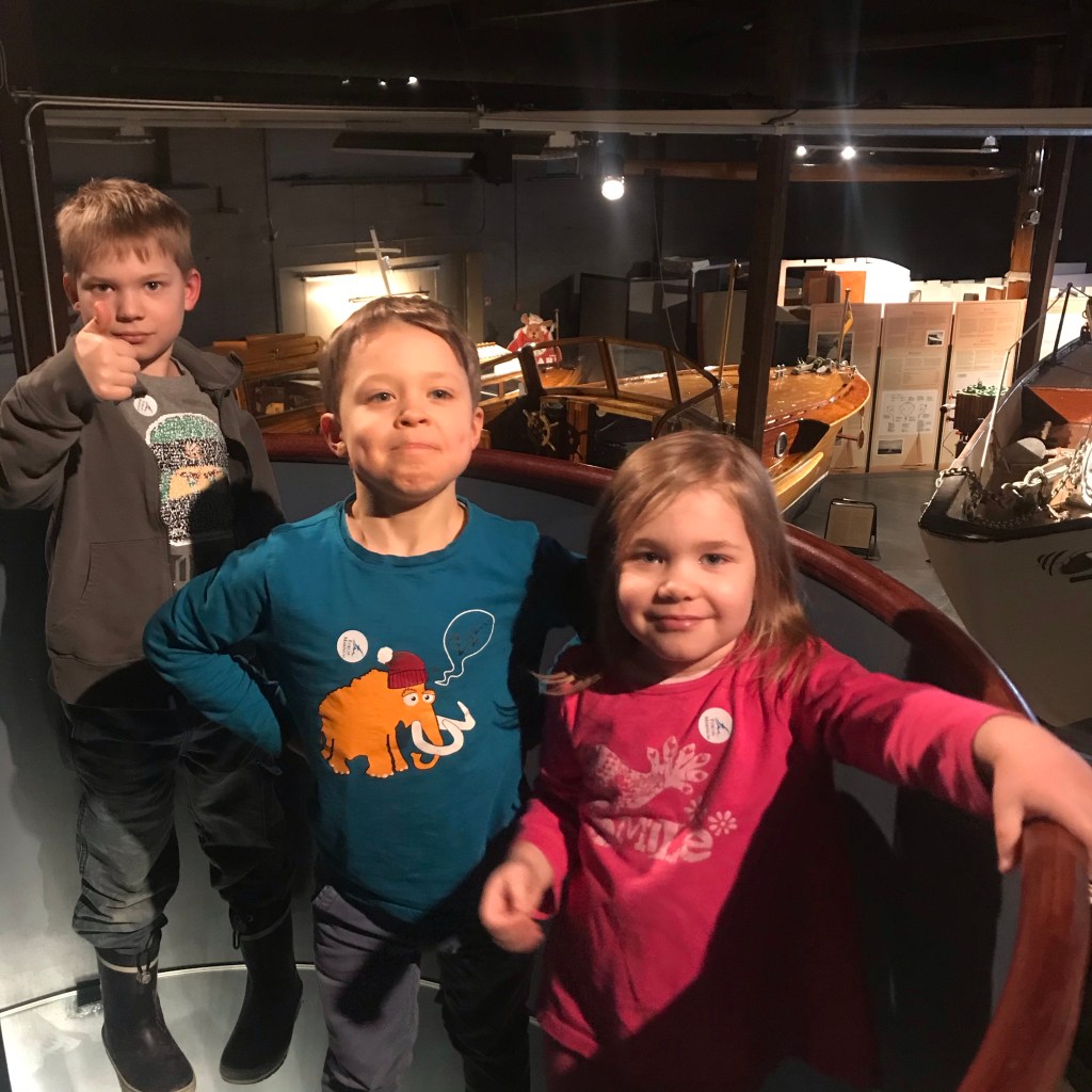 Sunnuntaina sään ollessa haastava teimme vielä retken Forum Marinumiin Turussa ja laivojen tutkiminen (siellä oli sekä Ville Viikinki -laiva, että Harri Hylje -laiva!!), moottorien käynnistäminen, laivojen kastaminen ja hologrammieläinten metsästäminen oli kuulemma ihan parasta! Aikuisen näkökulmasta Forum Marinum on oiva kohde lasten kanssa – tarpeeksi tutkittavaa, mutta tila hallittava.